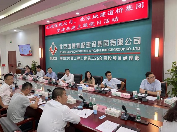 8月6日下午,北投保理公司黨支部與北京城建道橋建設集團華新分公司黨支部、地鐵項目黨支部在城建道橋集團地鐵12號線工地開展黨支部共建活動。北投投資公司副總經理、北投保理公司黨支部書記、執行董事李愛軍,北京城建道橋建設集團公司黨委書記姚自然出席。北投投資公司副總經理馮博,北投保理公司副總經理殷庚、申小敏,以及城建道橋建設集團黨委黨群工作部、華新分公司有關領導等17名黨員參加。