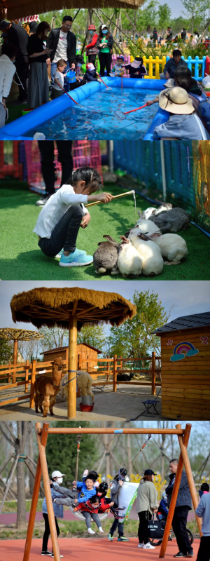 園區(qū)新設(shè)了樂沙園、無動力樂園、考古樂園等兒童游戲區(qū),可供小朋友們滑滑梯、蕩秋千、玩沙坑,還可以乘坐小火車,玩撈魚游戲,投喂羊駝、兔子等小動物,在帳篷營地享受親近自然的美好時光。